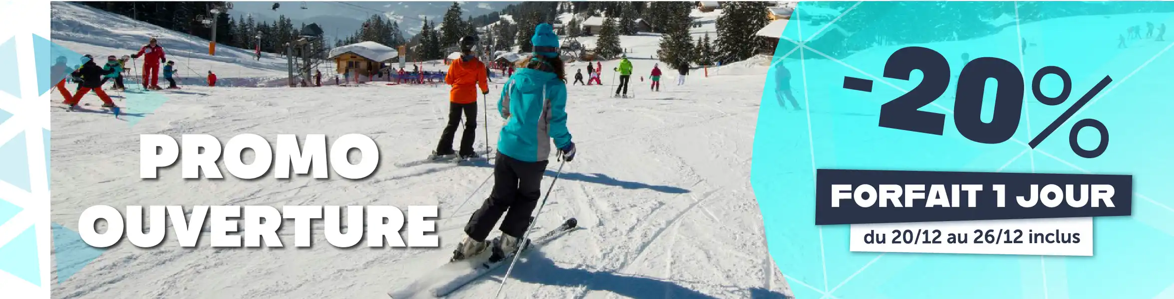 -20% sur votre forfait 1 jour ou plus, valable du 20/12 au 26/12 inclus.