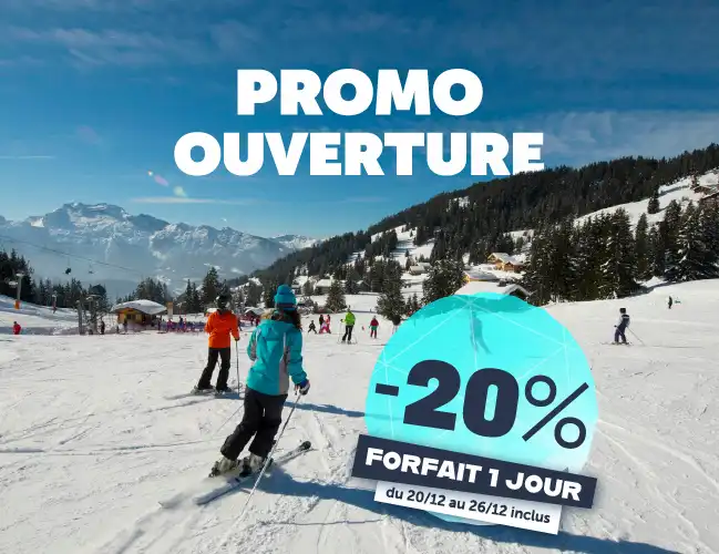En piste à partir du 20 décembre ! Bénéficiez d'une remise de -20% sur votre forfait 1 jour, valable du 20/12 au 26/12 inclus !