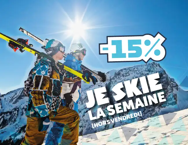 Je skie la semaine -15% (Tarif Web) : du lundi au jeudi (hors vacances scolaires) | ||||